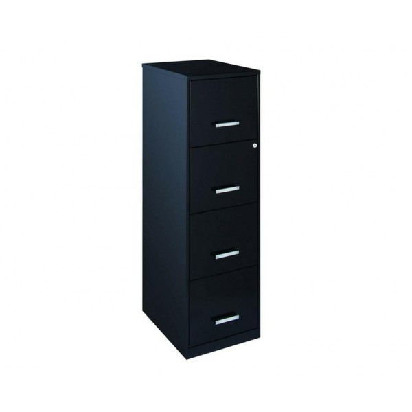 ARCHIVERO VERTICAL METALICO CON 4 GAVETAS TAMAÑO CARTA. FABRICADO EN LAMINA CALIBRE 28, CORREDERAS SENCILLAS, SEGUNDA GAVETA CON CERRADURA (PARA LOS DOS CAJONES SUPERIORES) Y JUEGO DE LLAVES. PINTURA HORNEADA EN EXTERIOR E INTERIORES GALVANIZADOS. EN COLOR NEGRO. DIMENSIONES: FRENTE 36CM, FONDO 46CM Y ALTURA 118CM.